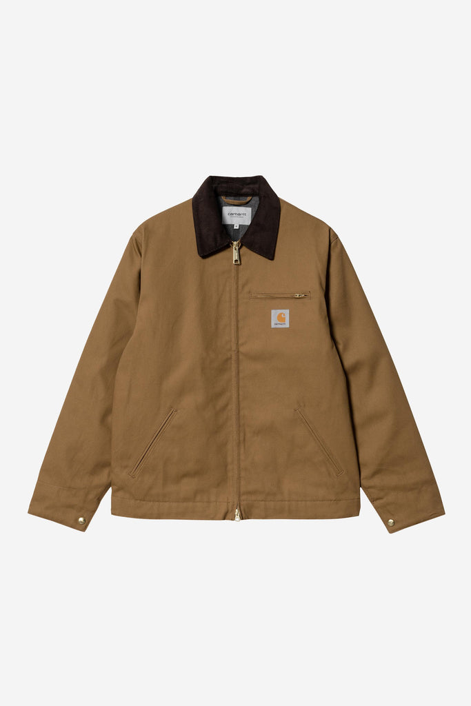 A Carhartt WIP classic, the Detroit Jacket is constructed in our hardwearing 12 oz Dearborn Canvas and features a blanket lining for warmth. A corduroy collar, as well as a gold-tone zip closure at the front and on the chest pocket complete the design.