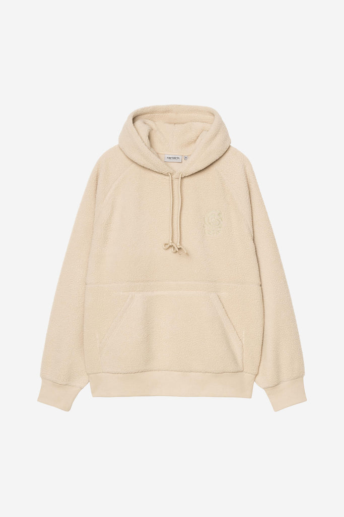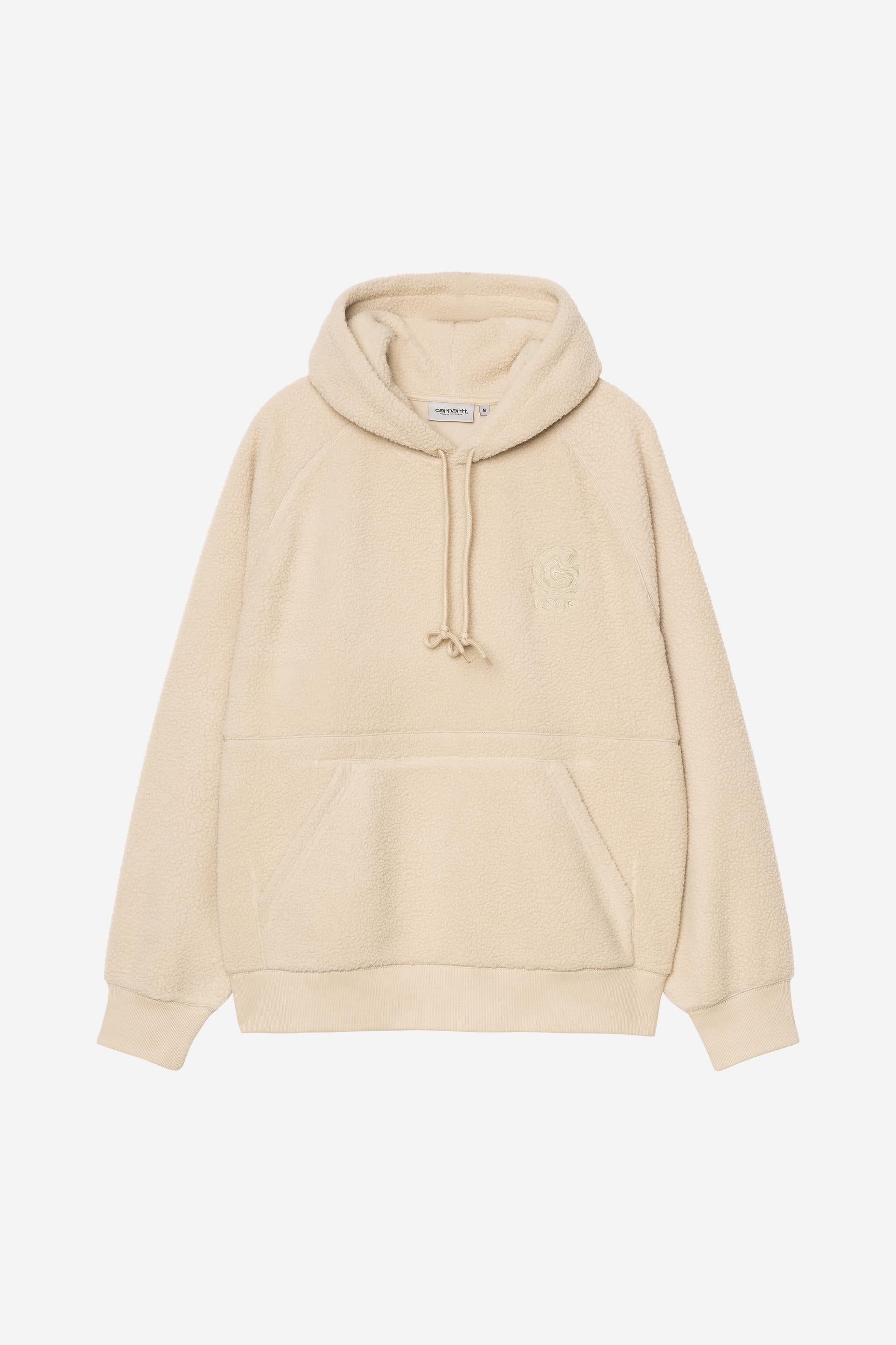 The Carhartt WIP Hooded Helix Sweatshirt is made from midweight, brushed polyester fleece. It is cut in a balloon fit, which is a little looser and boxier, but also characterized by dropped shoulders and ribbed trims. The style features an adjustable hood as well as a kangaroo pocket. Graphic embroidery appears on the front and back.