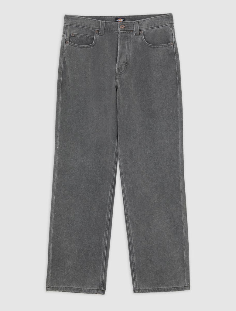 In a classic five pocket cut, these loose fit denim jeans from Dickies are made for laidback days. They're straight and relaxed on the leg, with a regular rise waist for easy style and all-day comfort and collegiate, sports-inspired feel.
