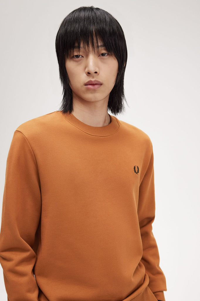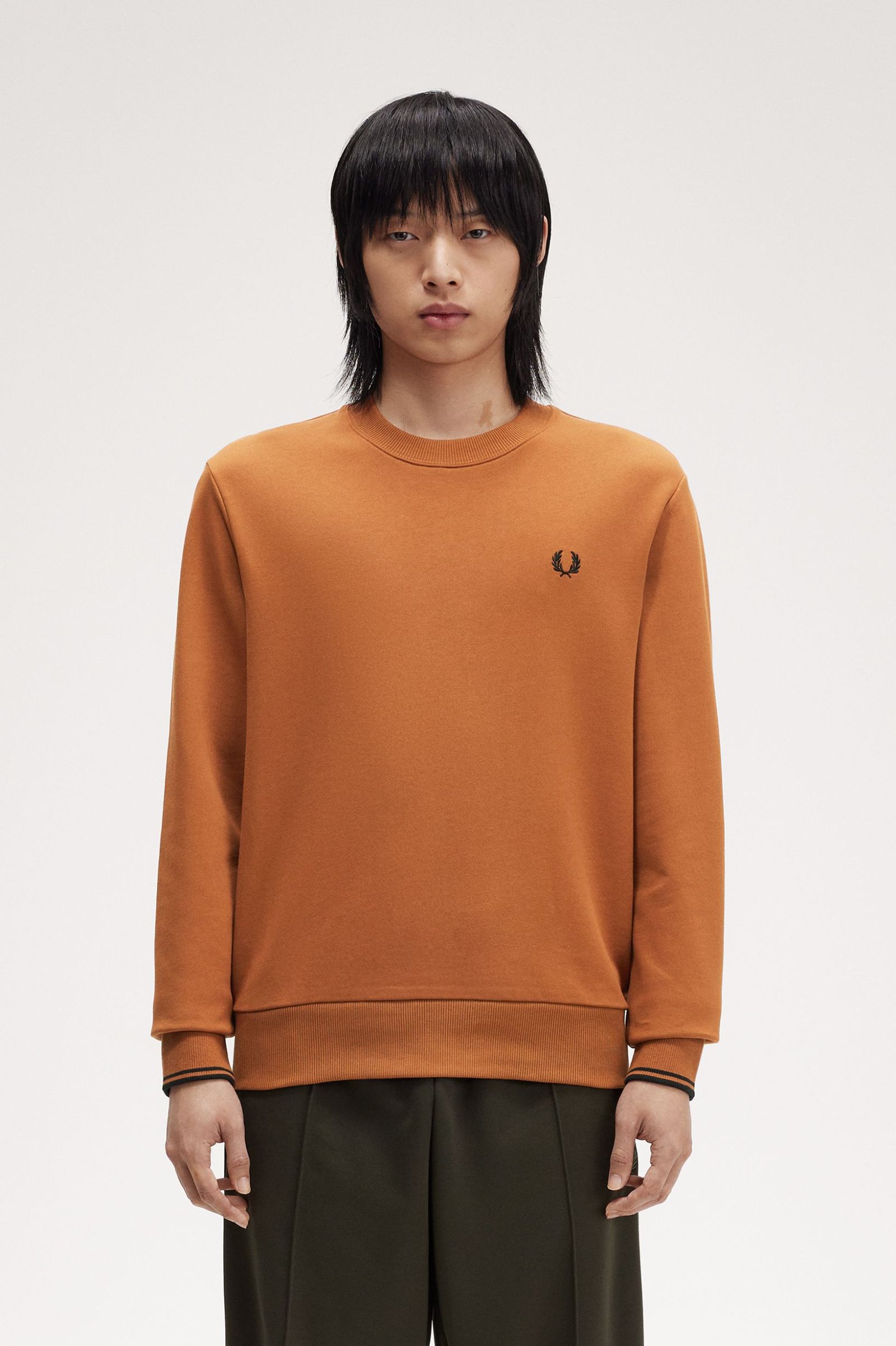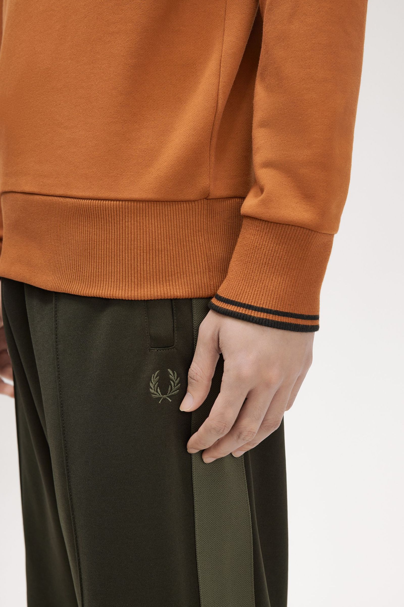 Adopted by sports players in winter training sessions, the cotton sweat is a time-honoured classic. Our crew neck sweatshirts features subtle Fred Perry design details, with twin tipping at the cuffs and the ever-present Laurel Wreath embroidered proudly on the chest. Built for layering.