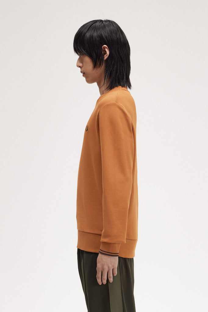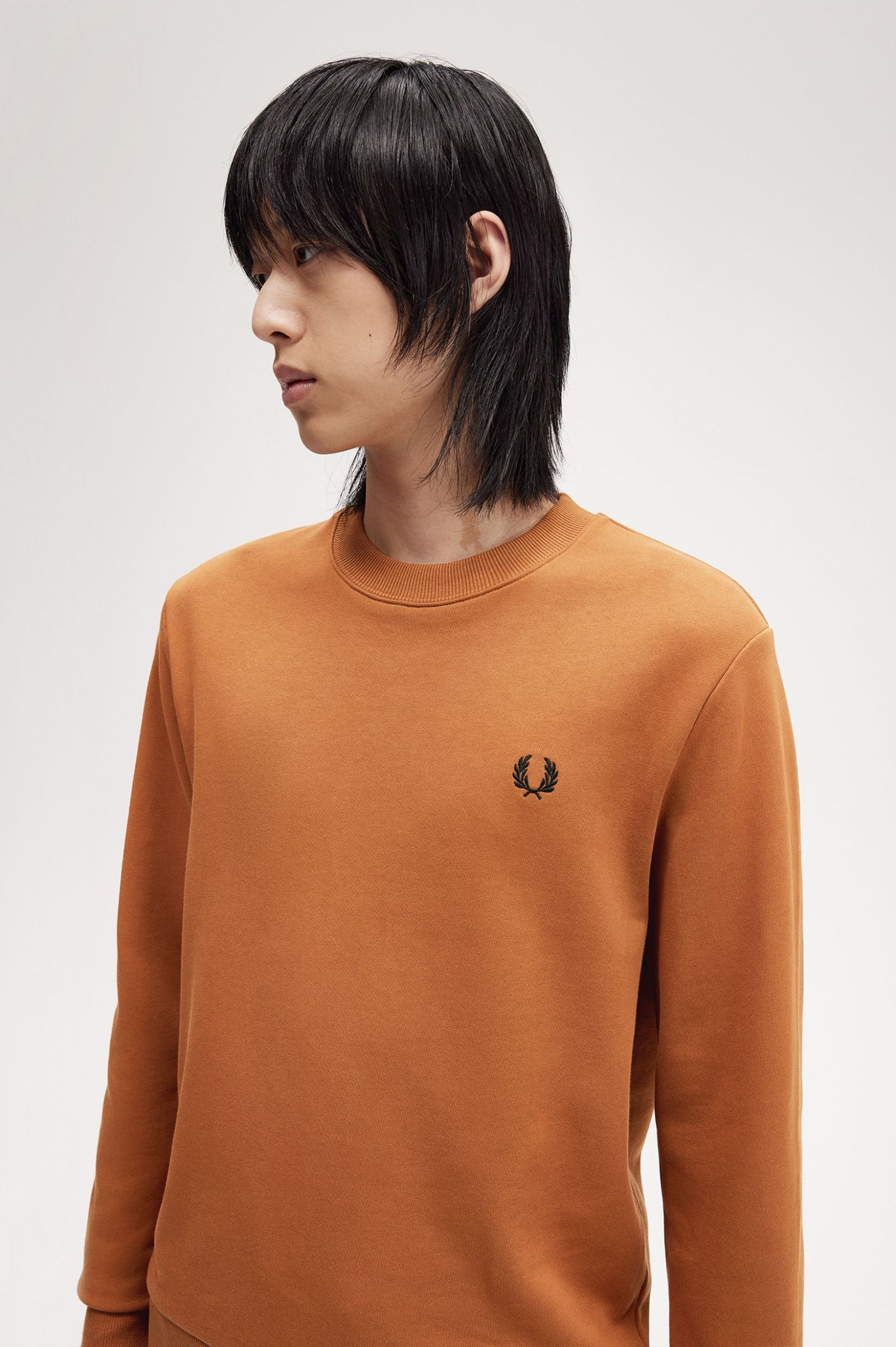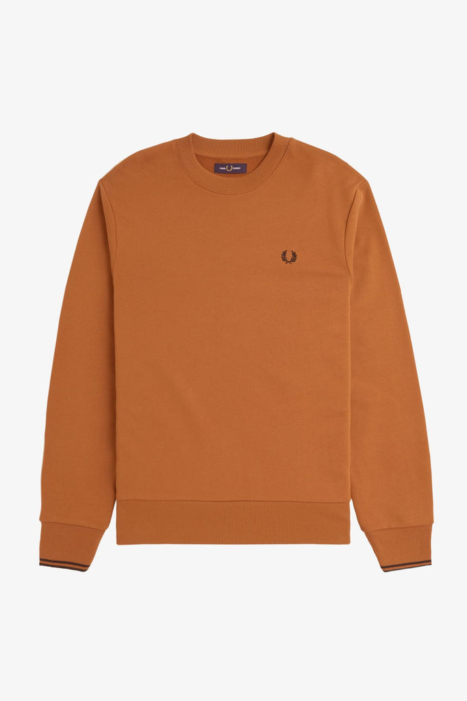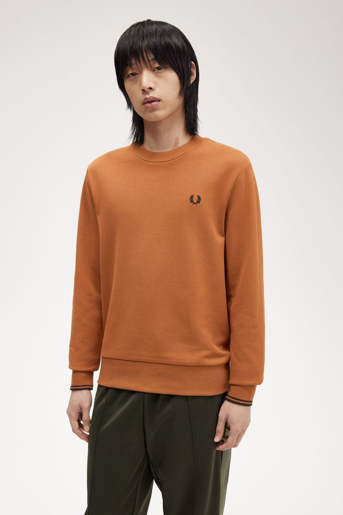 Adopted by sports players in winter training sessions, the cotton sweat is a time-honoured classic. Our crew neck sweatshirts features subtle Fred Perry design details, with twin tipping at the cuffs and the ever-present Laurel Wreath embroidered proudly on the chest. Built for layering.