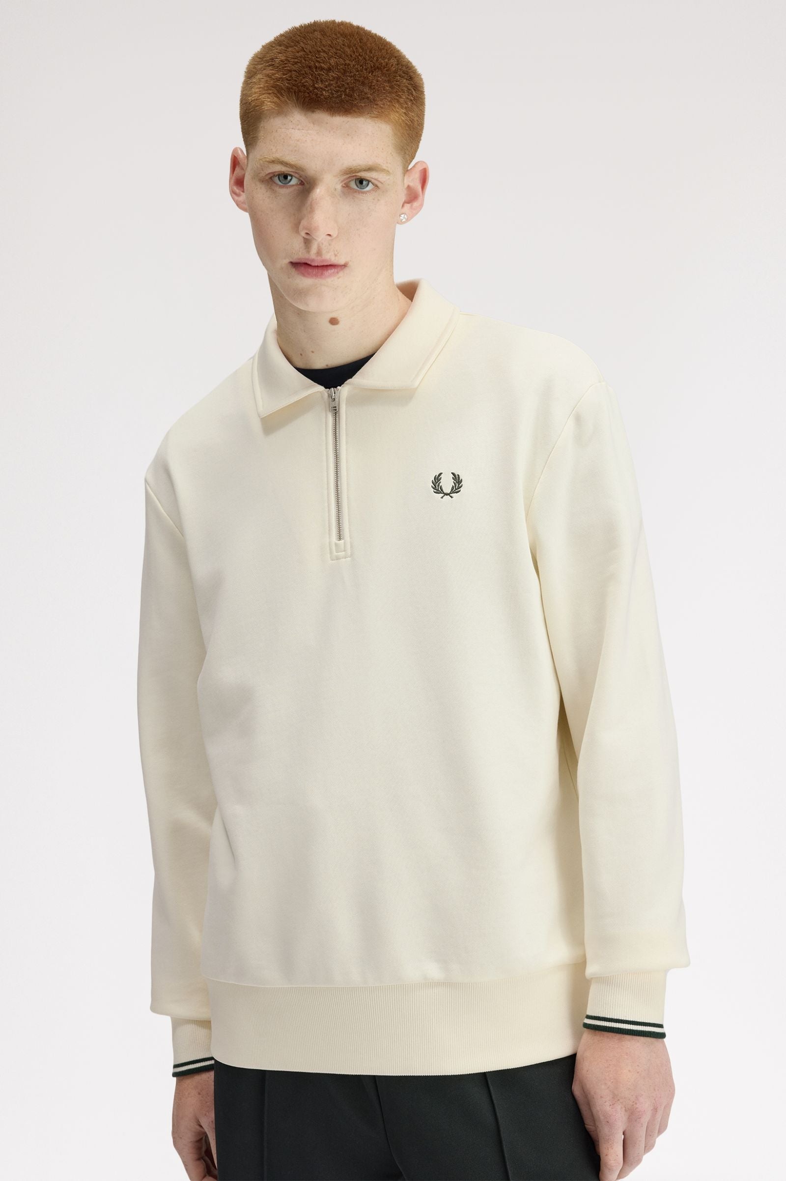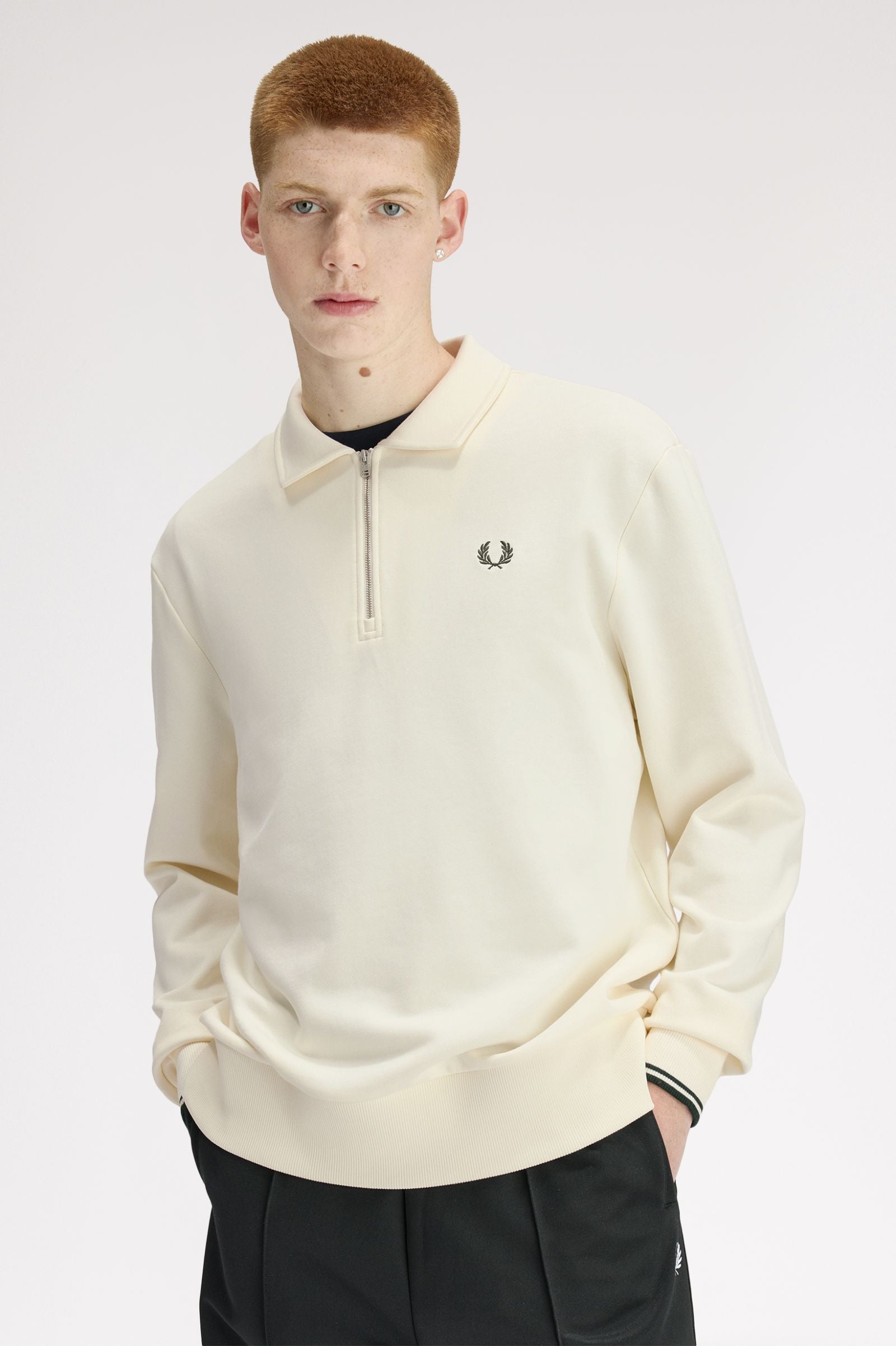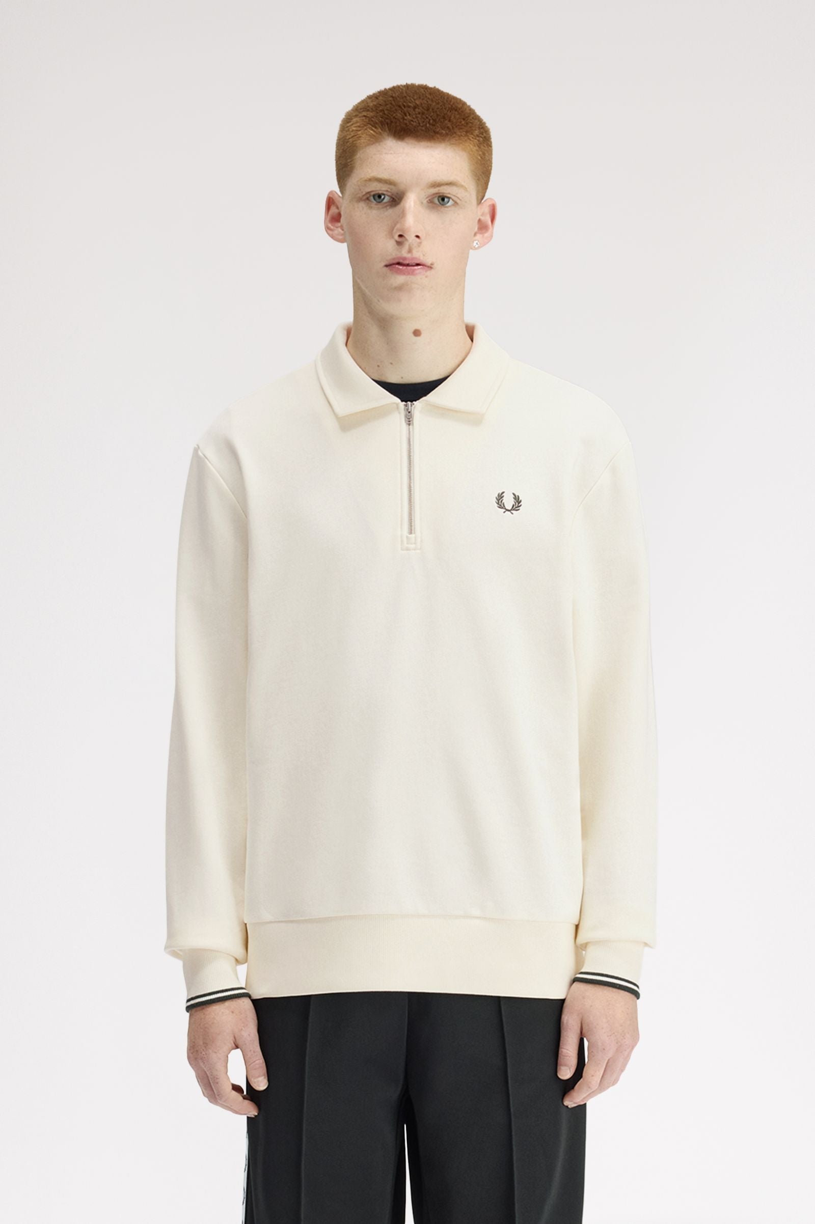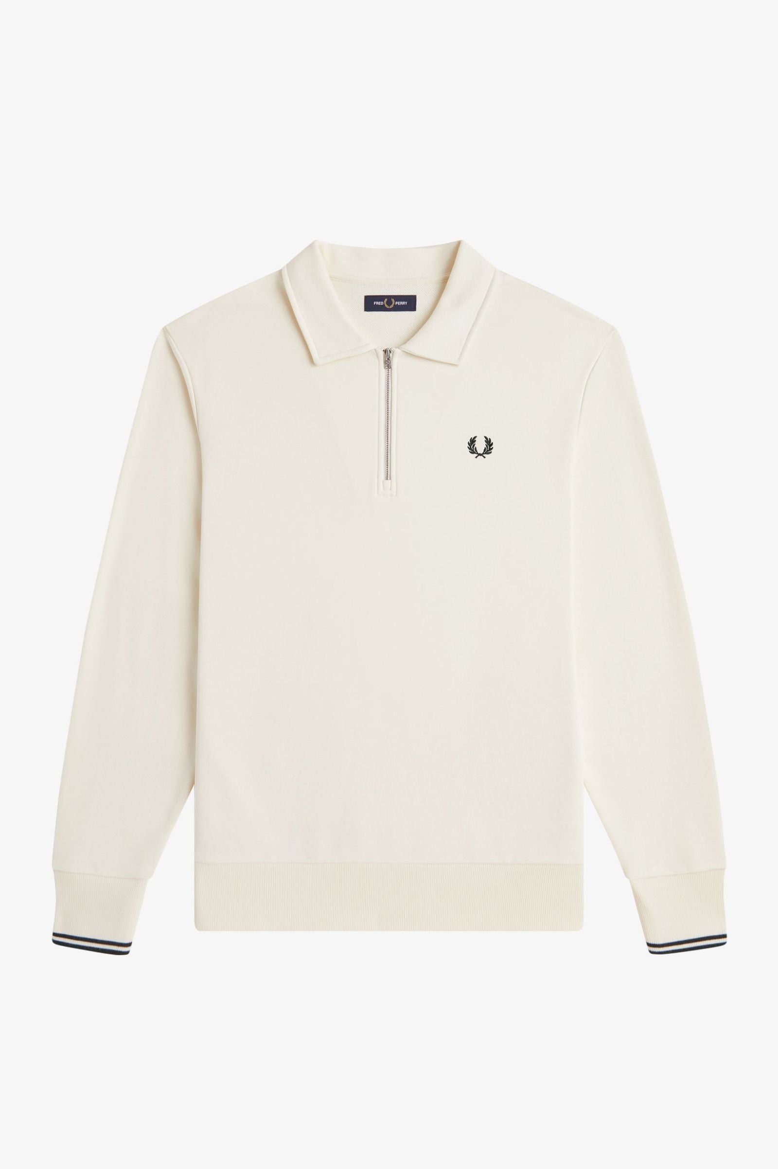 A refined take on true Fred Perry sport codes. Cut in French terry with a fine gauge zip and twin tipping in Fred Perry's 5-4-4 ratio to the cuffs.