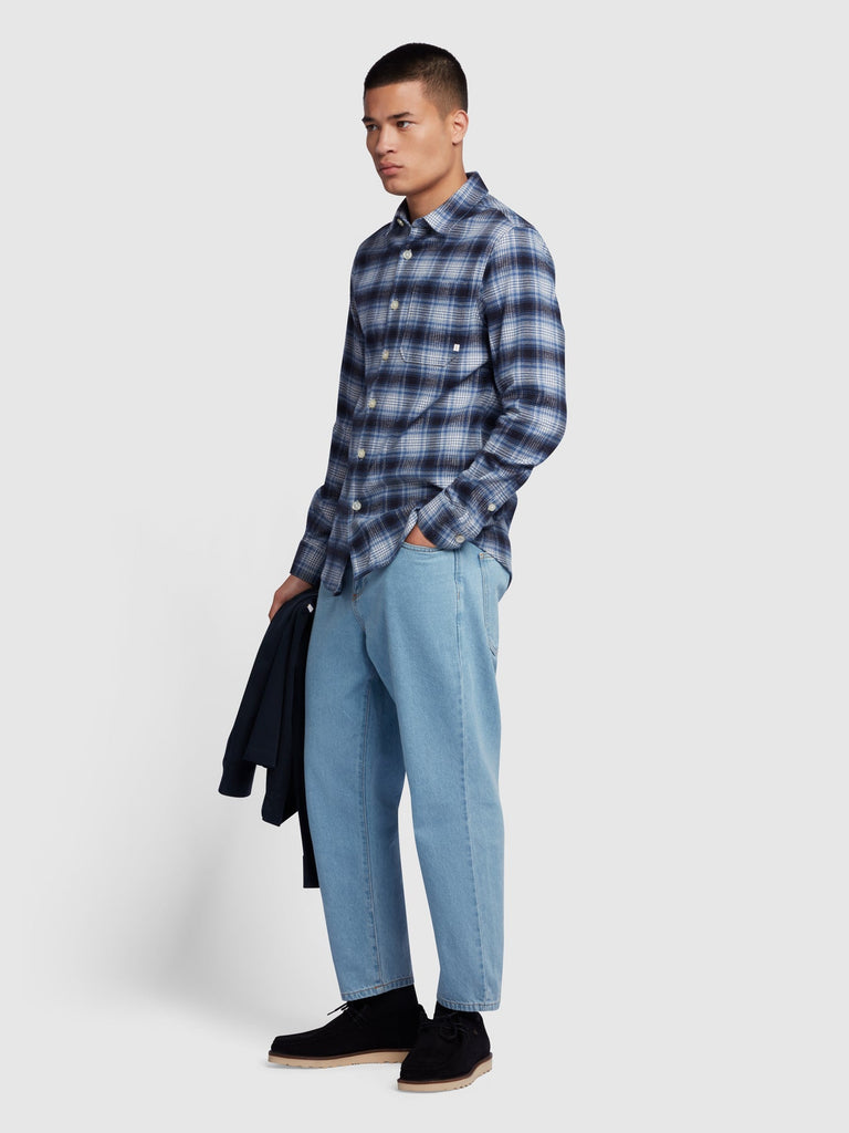 Calabria Casual Fit Ombre Check Shirt In Steel Blue