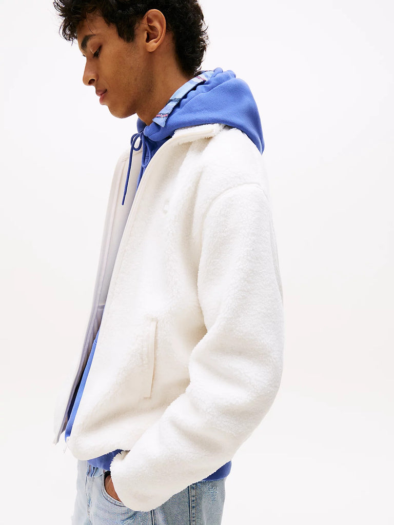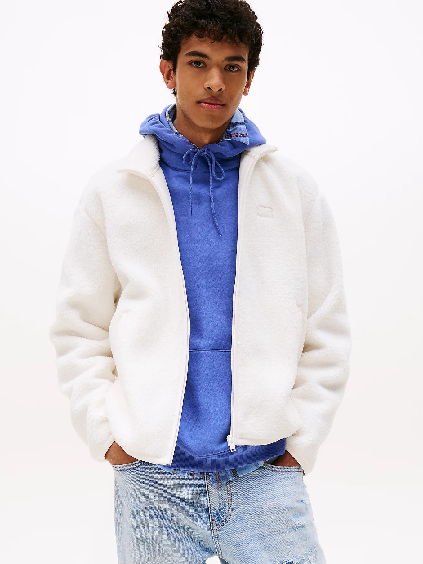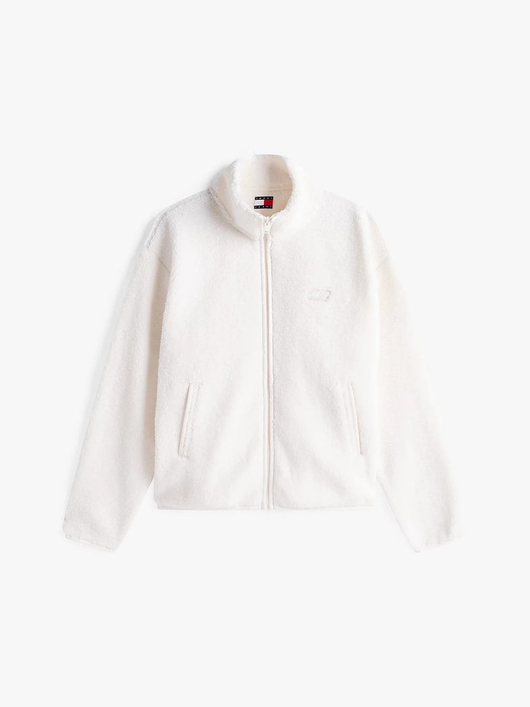 Wrap up warm in this zip-thru funnel-neck Tommy Jeans sweatshirt, made from textured teddy fleece with a slouchy relaxed fit.