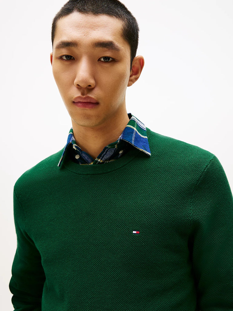 Add texture to your layering options with this versatile Tommy Hilfiger jumper, knitted from pure combed cotton in a timeless crew neck design.