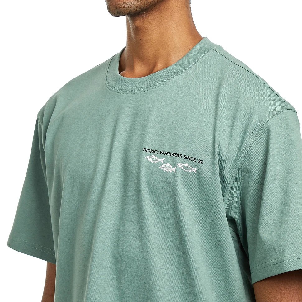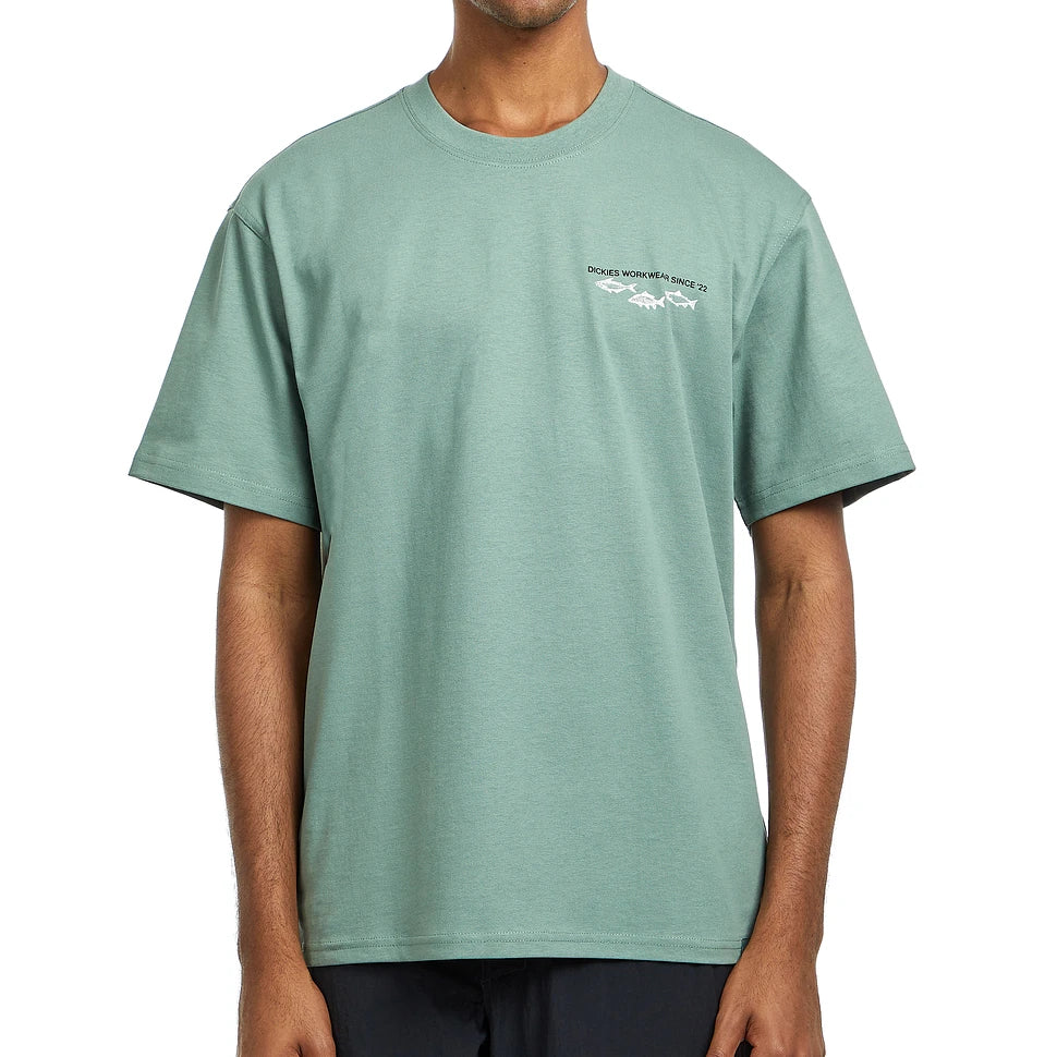 Crafted from durable cotton jersey, the Dickies Laryville is a durable and comfortable short sleeve t-shirt that nods to the outdoors and adventure. It has printed artwork on the front and back as well as a Dickies woven hem loop label.