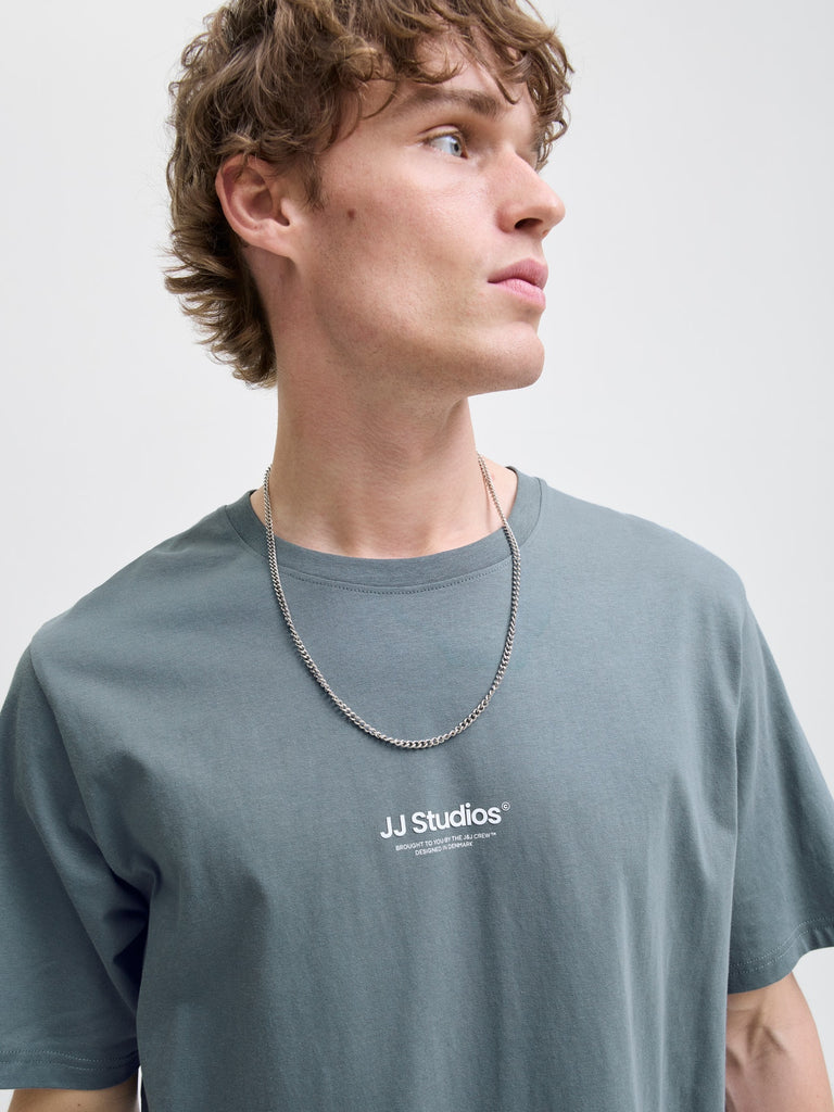 This basic Jack and Jones T-shirt is a wardrobe essential that works well with jeans, shorts, and trousers. Cotton is a natural fibre known for its soft and breathable properties.