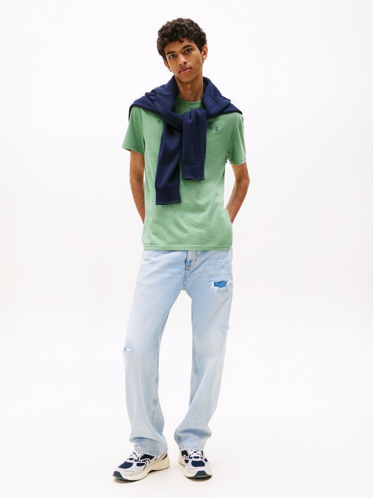 Refresh wardrobe staples with this versatile pure cotton Tommy Jeans T-shirt in a classic regular fit and detailed with linear logo embroidery.