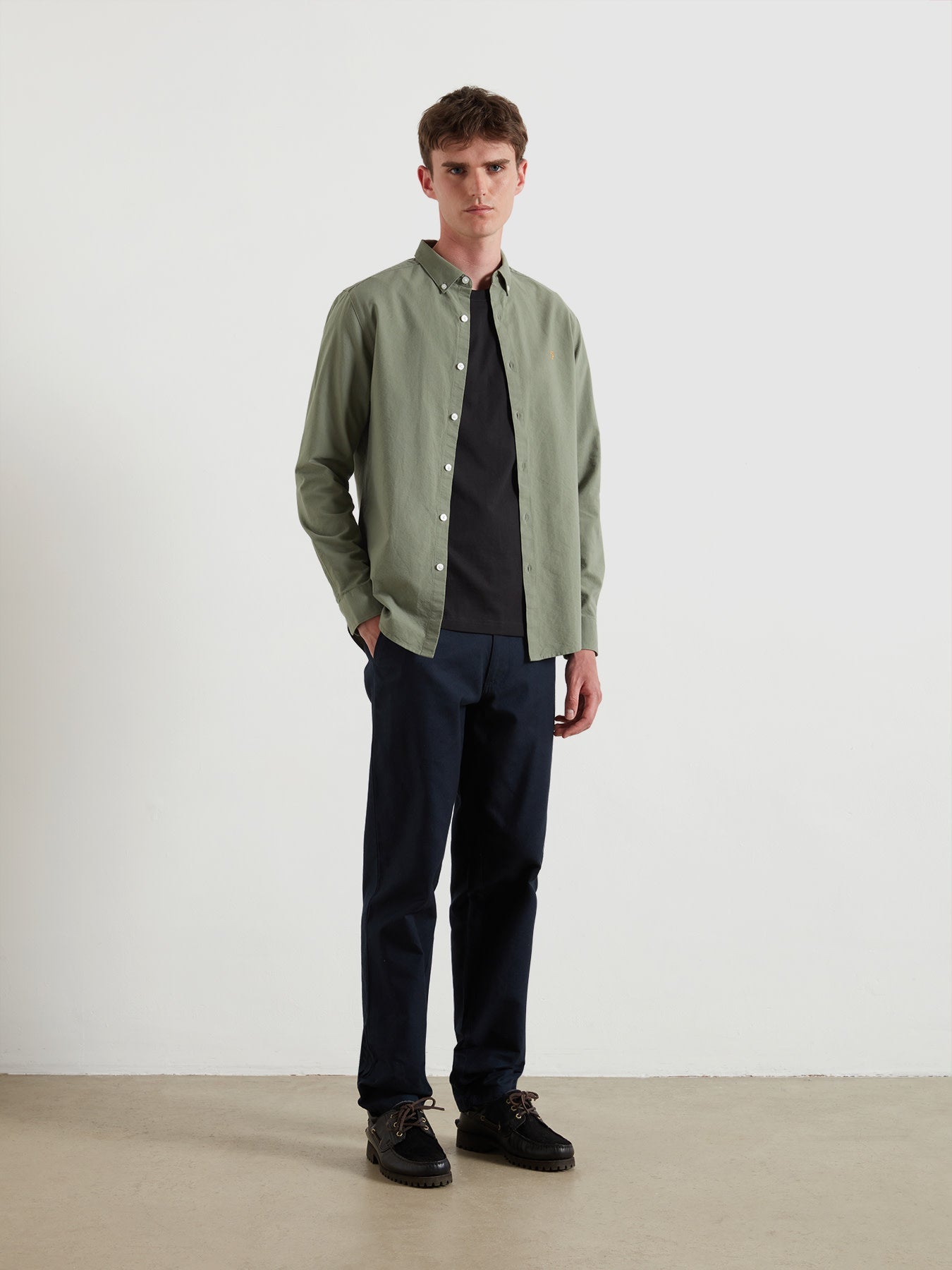 The Farah Brewer Oxford shirt is an essential, modern menswear classic. Expertly crafted from 100% organic cotton, the Brewer Oxford shirt boasts a button-down collar, long sleeves, and a curved hem for a stylish, must-have wardrobe staple. The Oxford weave provides a classic feel with added durability, while the signature gold Farah logo provides the perfect finishing touch.