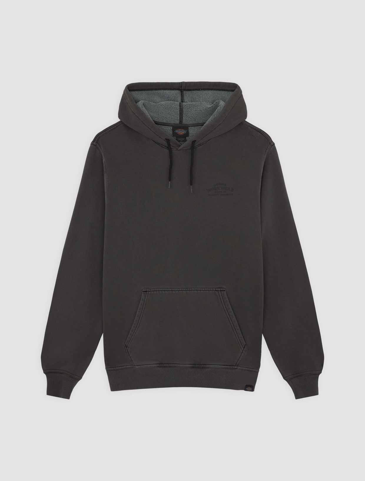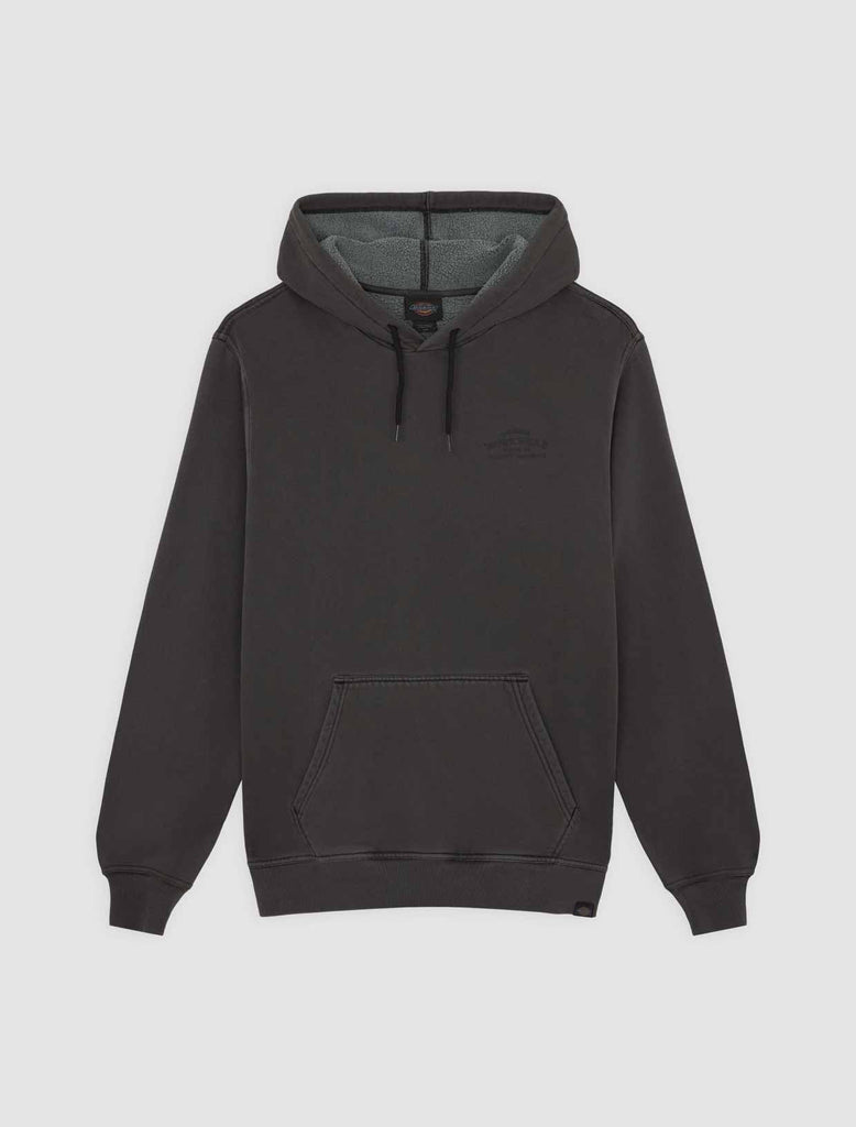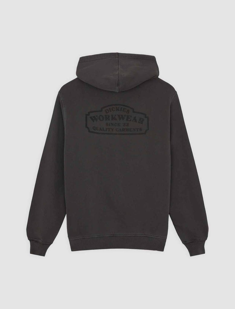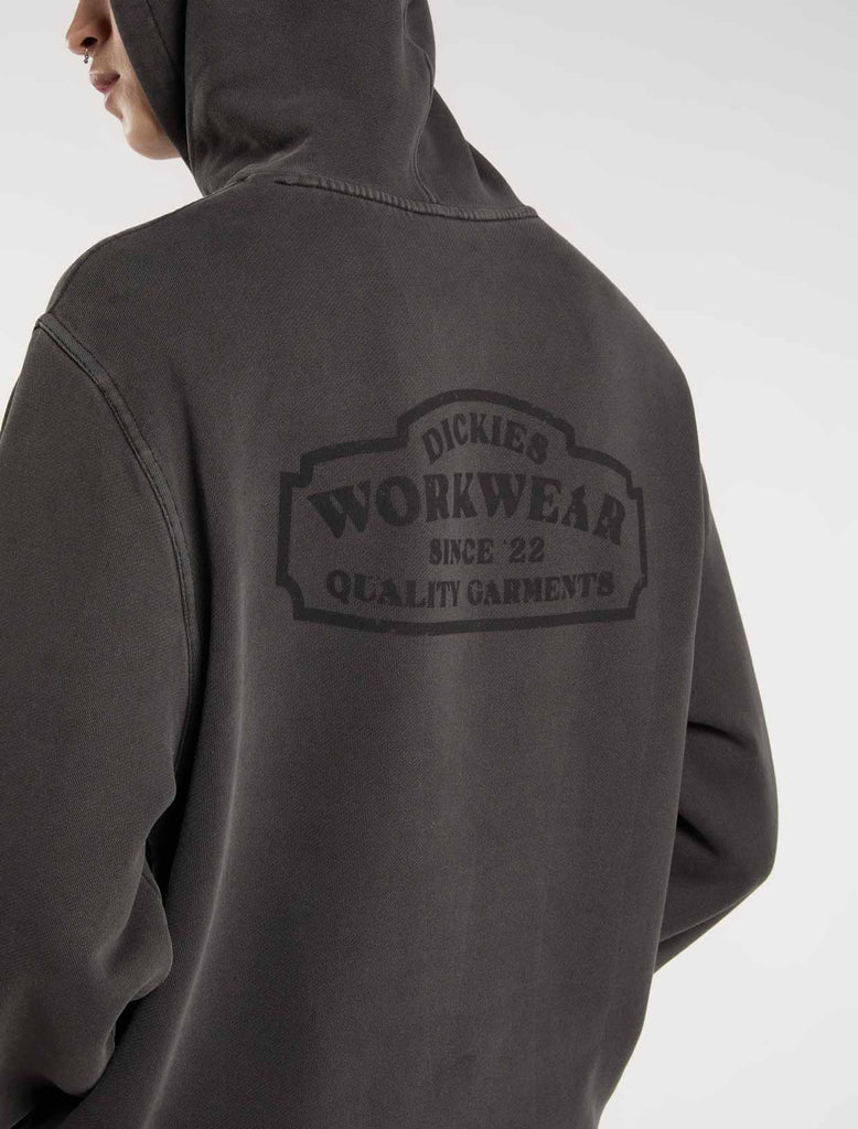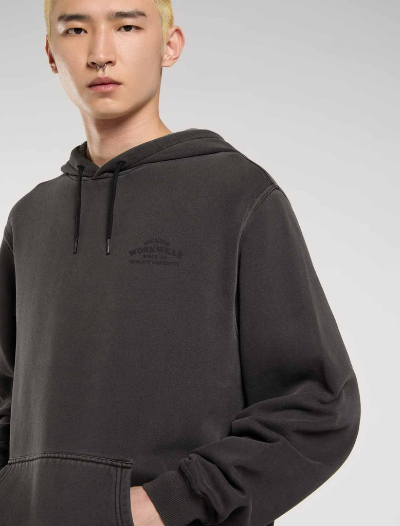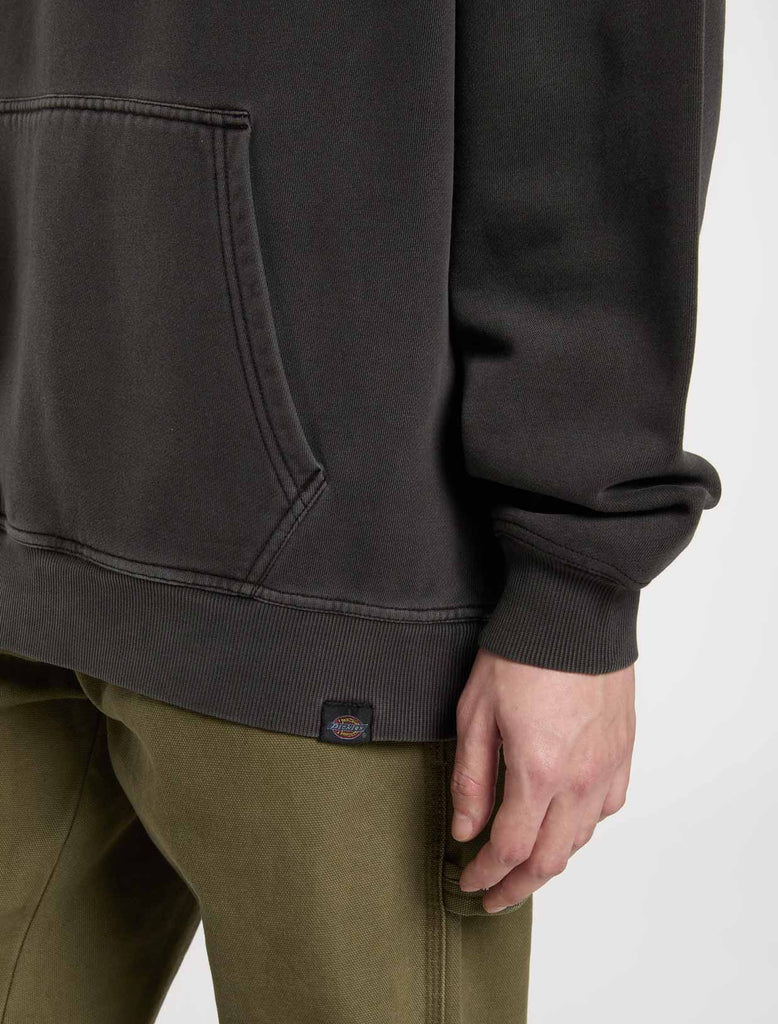 The Christiana garment dye pullover hoodie from Dickies is a relaxed fit hooded sweatshirt with a unique finish, designed to be a comfortable and warm everyday piece for the colder months. It comes with a kangaroo pocket, a dyed-to-match woven Dickies hem loop label, and vintage-inspired signage artwork graphics.