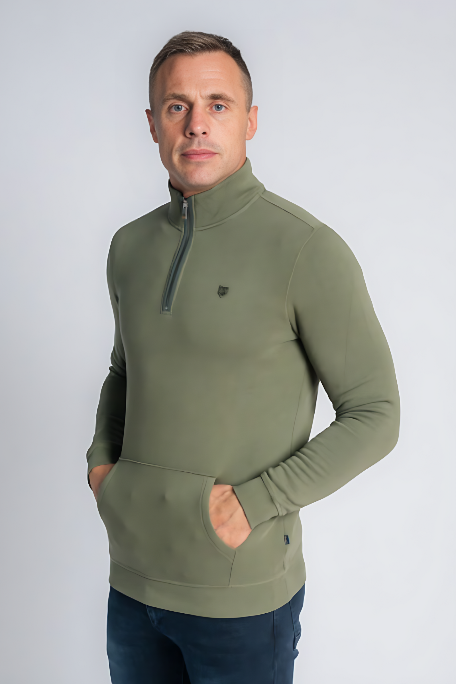 The XV Kings Gladiators 1/4 Zip is a cotton half-zip sweatshirt designed for expert layering over a t-shirt. Featuring a comfortable kangaroo pocket, it blends casual ease with functional style, making it an essential piece for versatile wardrobe layering.