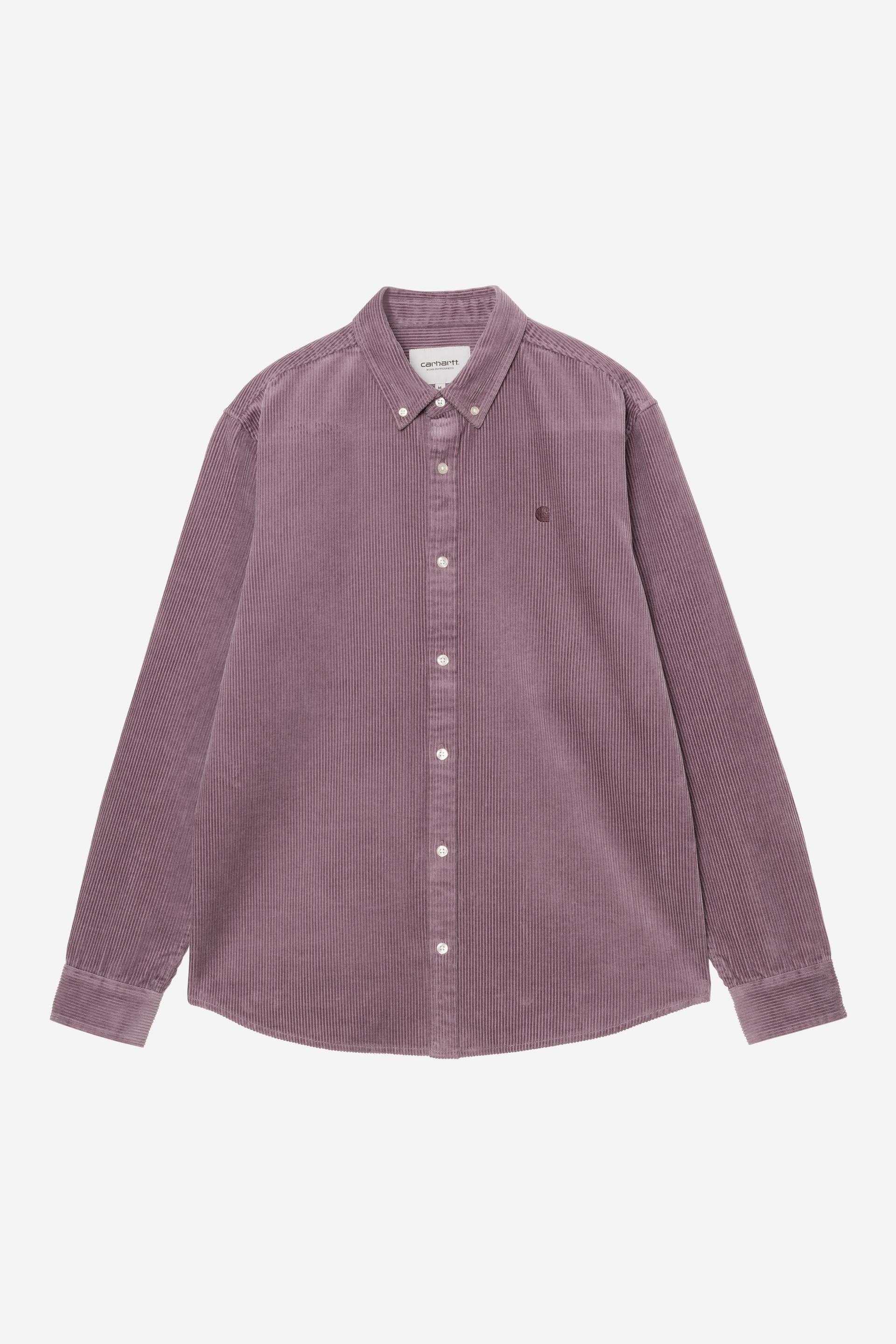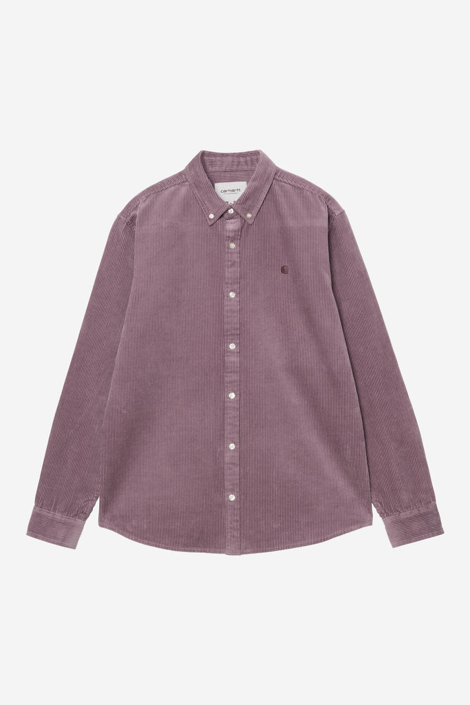 The Carhartt WIP Madison Cord Shirt is constructed from 8 wale cotton corduroy, meaning that the ridges in the fabric are of a wide thickness, and is cut to a regular fit. The style also features a curved hem, a button-down collar, and an embroidered 'C' Logo on the chest.