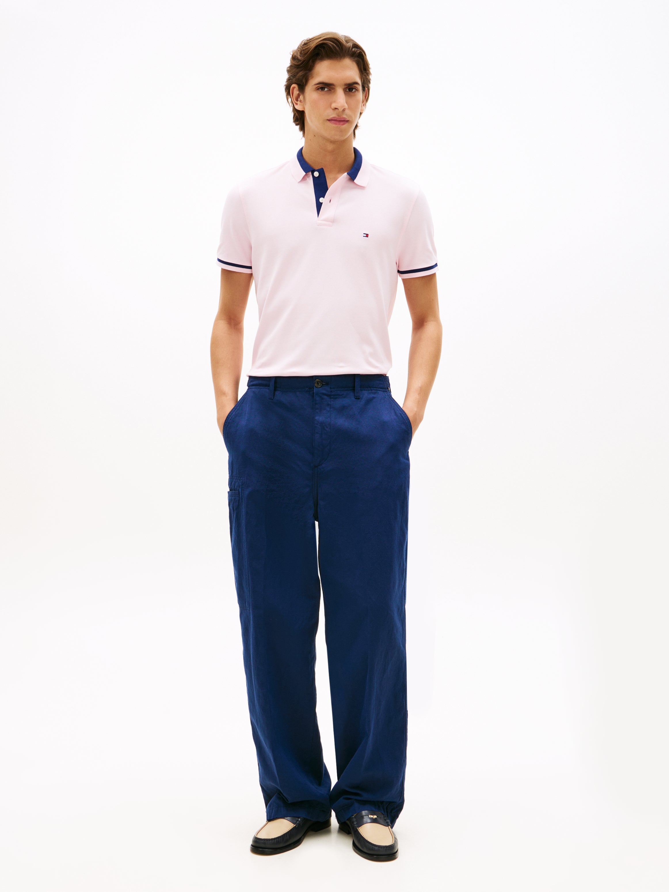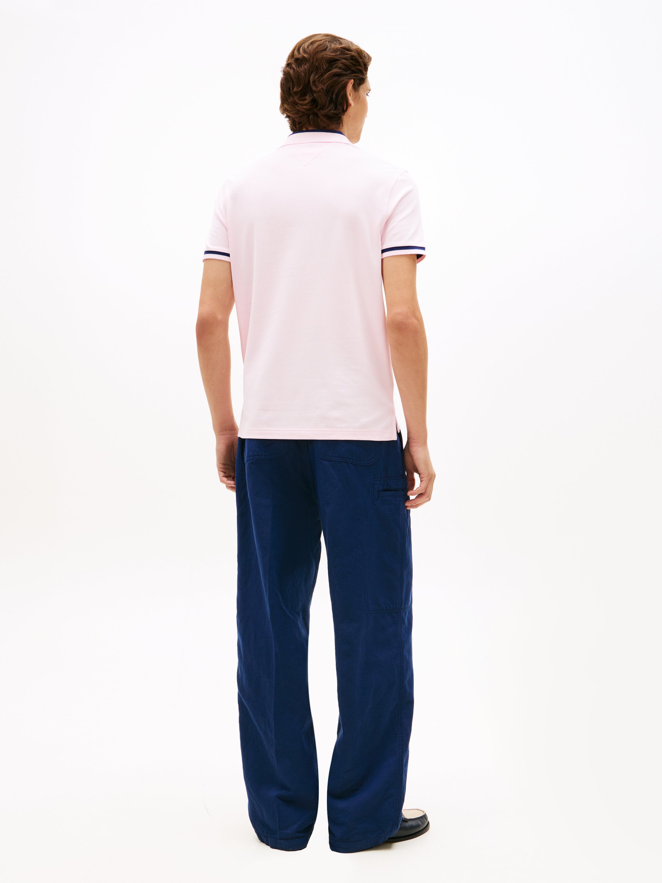 This polo shirt with flag embroidery on the chest features contrasting detail, bringing a pop of vibrancy to a classic design.