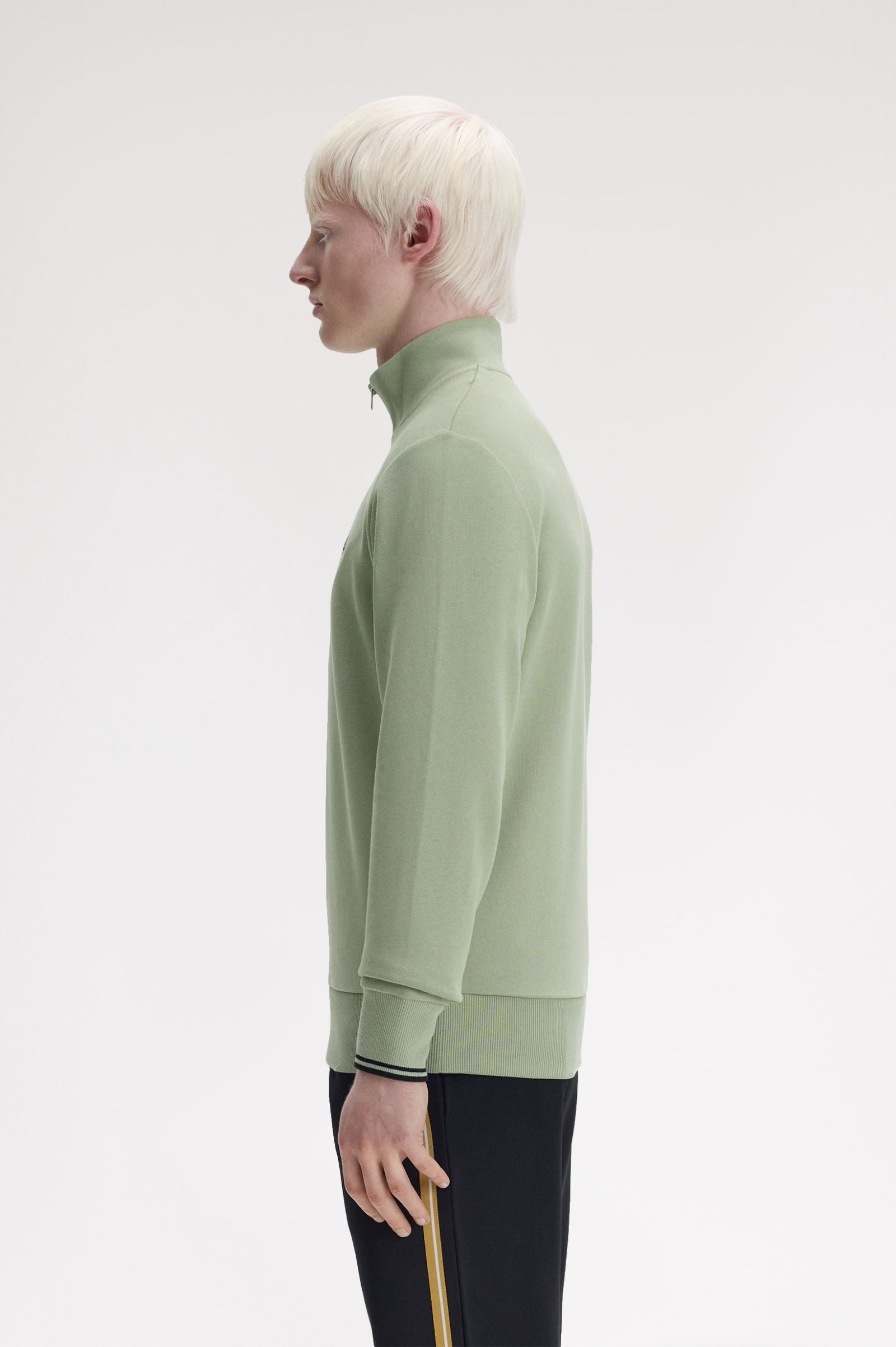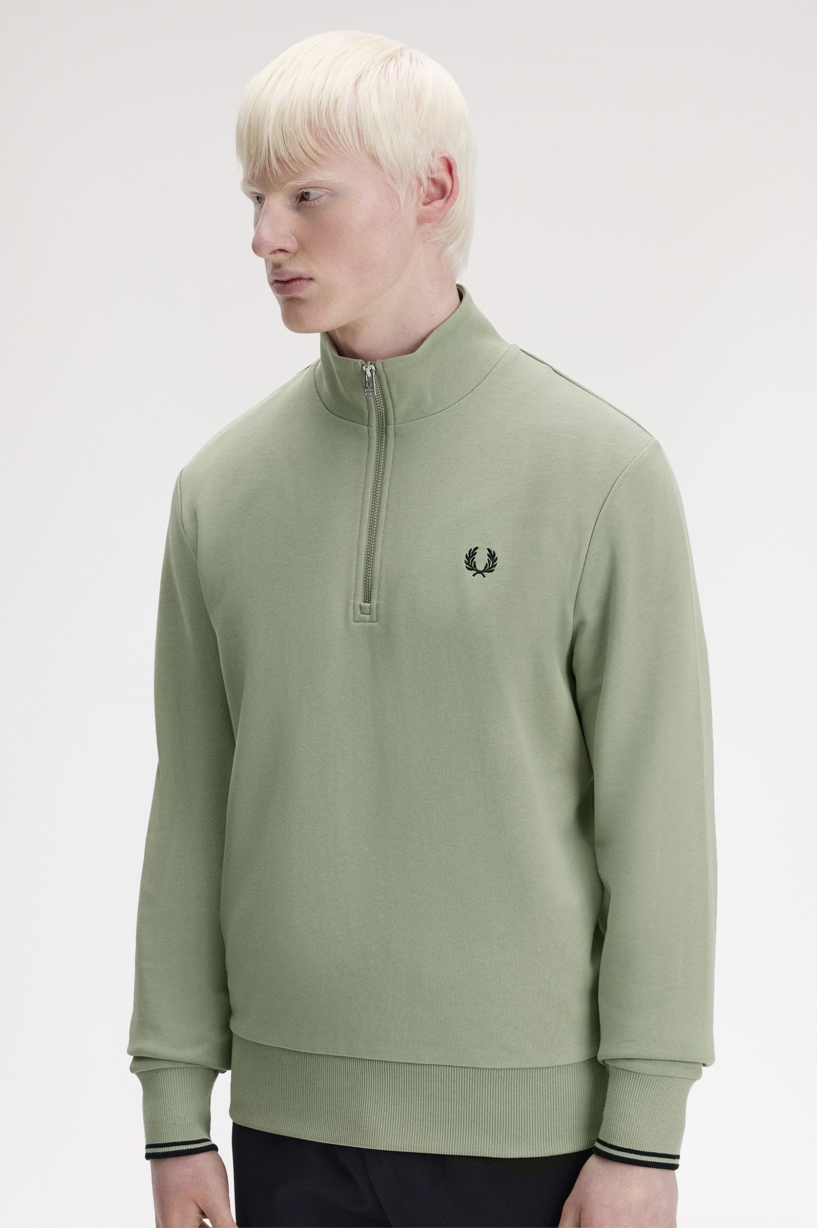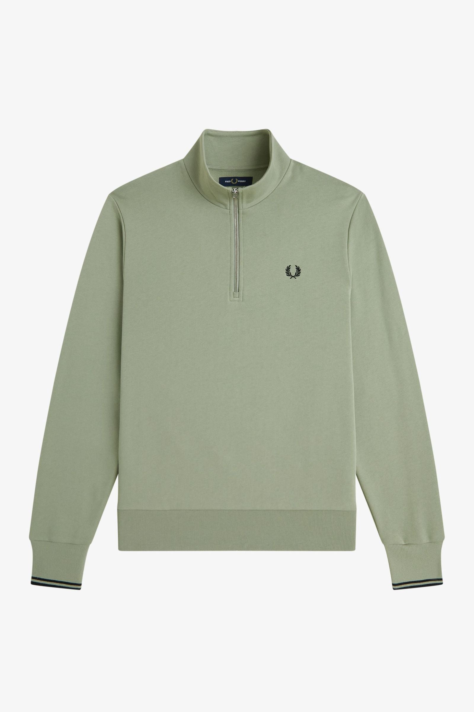 Fred Perry's cotton half-zip designed with twin tipping to the cuffs.