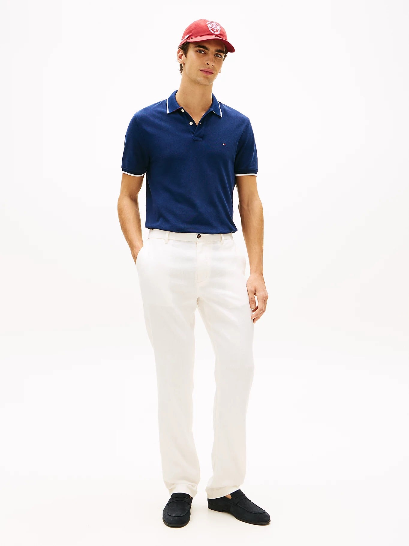 - Tipped polo collar and cuffs