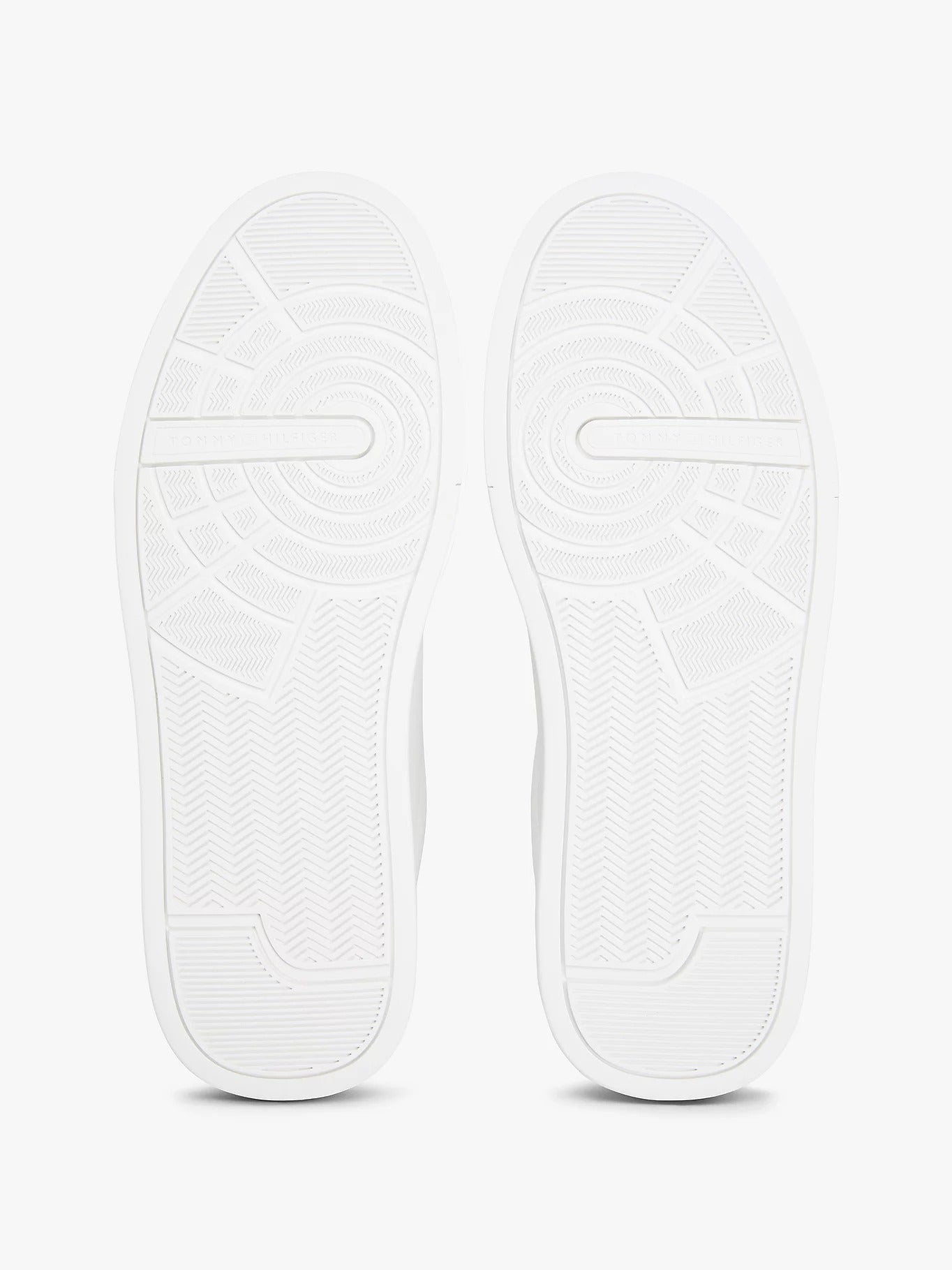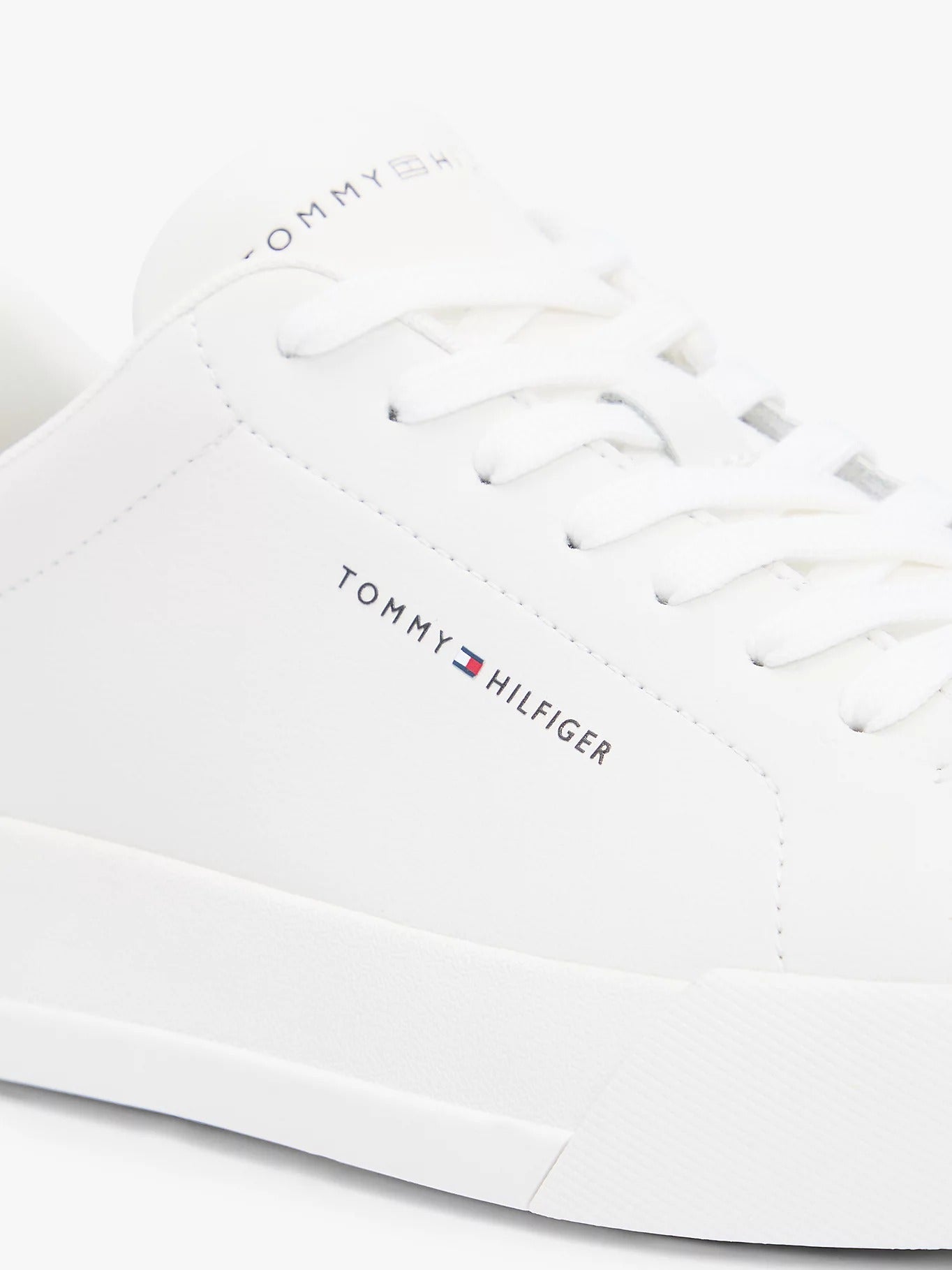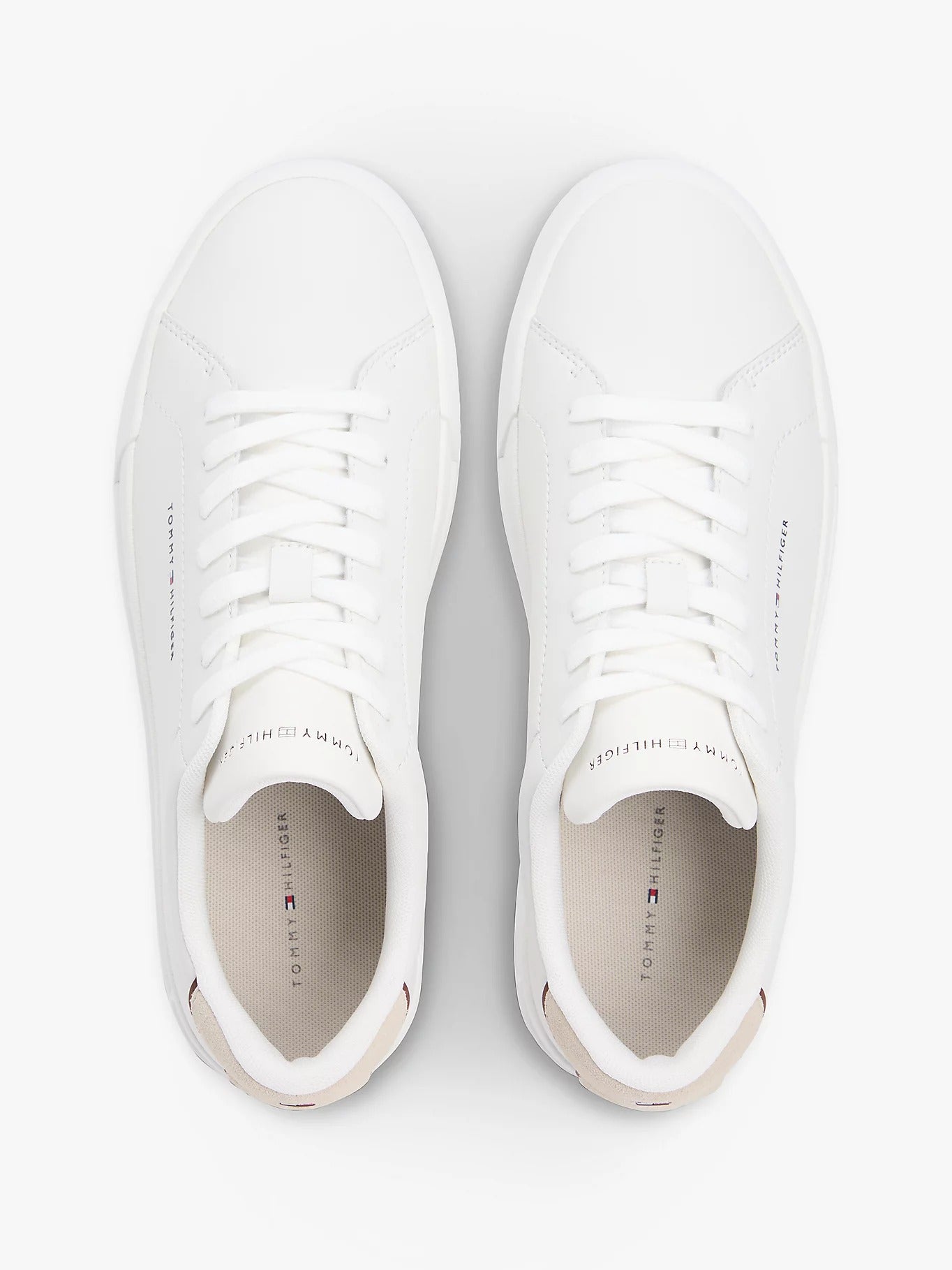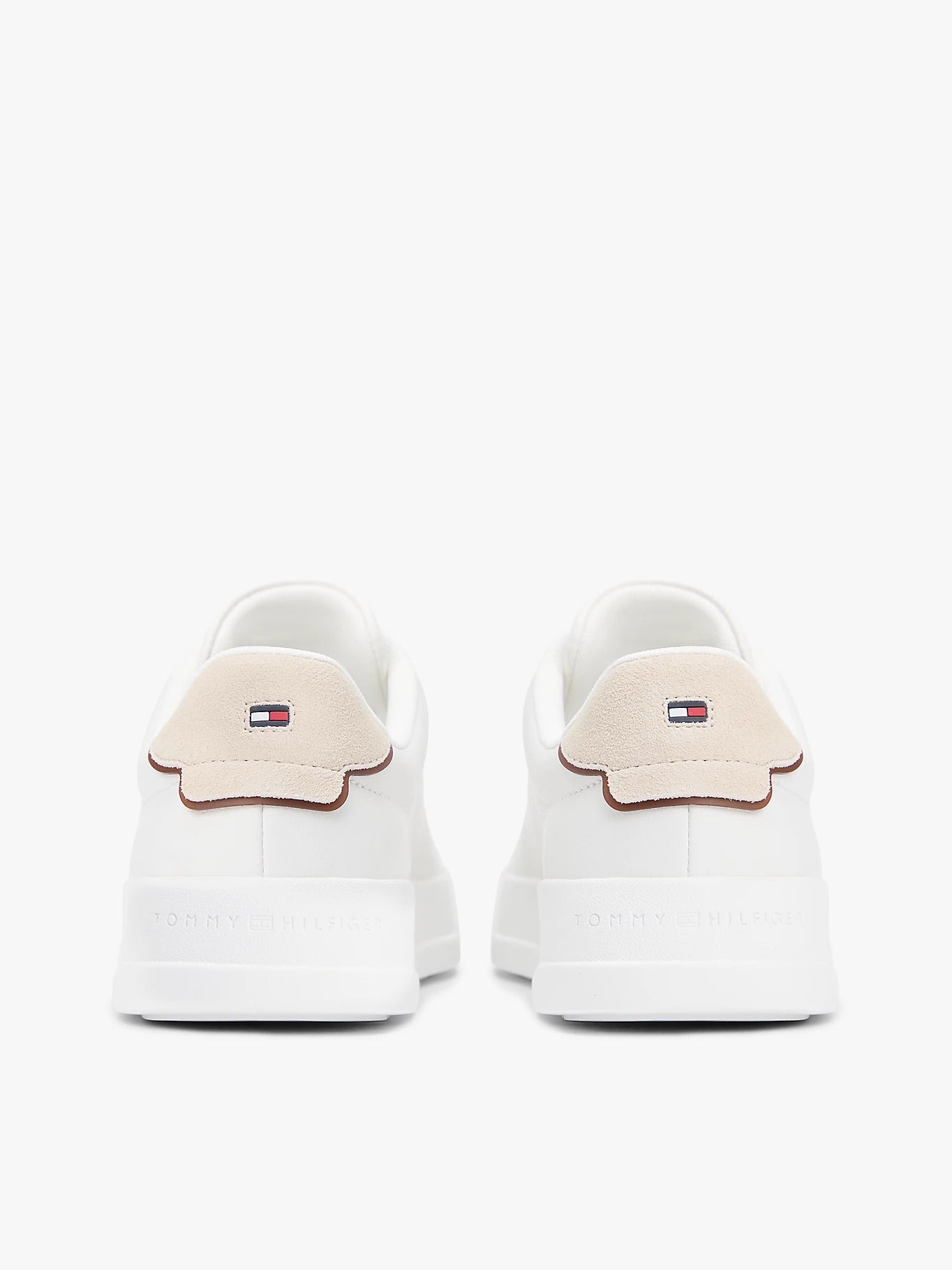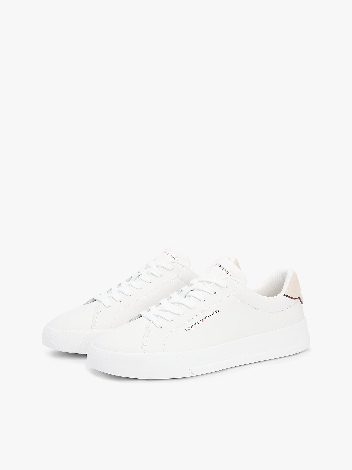 Go for a streamlined look in these coated leather trainers, featuring a classic court silhouette that's elevated by the contrast heel panel.